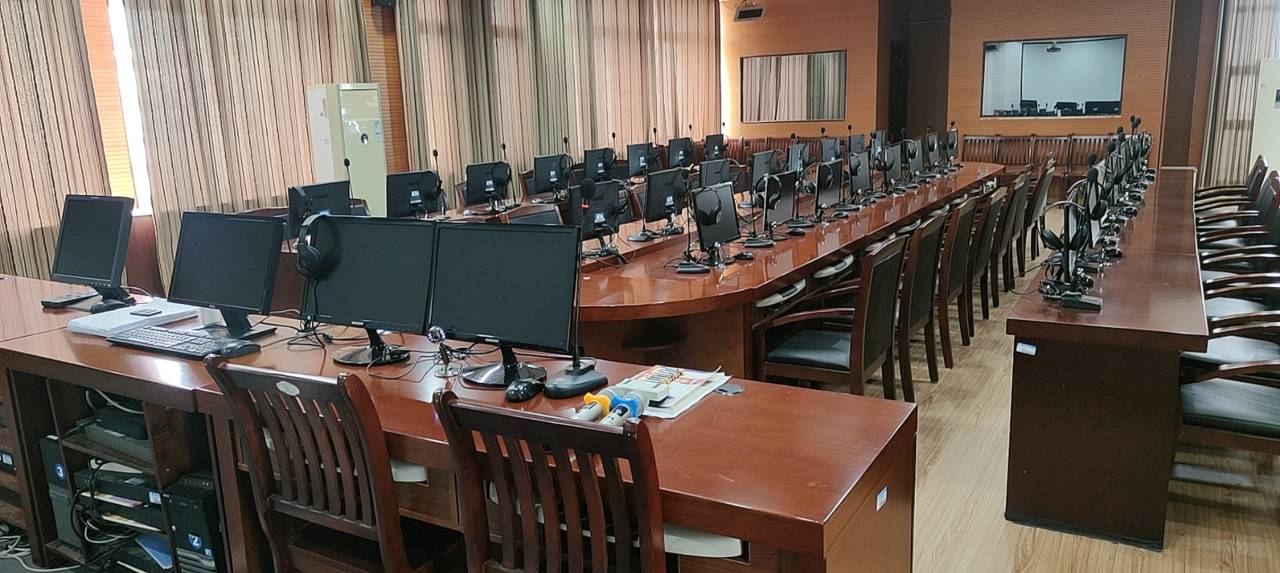 外国语学院实习实训中心占地3000余平方米,拥有各类功能完善的实验(训)室15口:其中自主学习机位200余个,语言实验室3口,同声传译实验室1口,商务英语录播室1口、商务英语实训室1口、英语师范技能培训室1口、英语写作笔译实训室1口VR教师教育及语言技能中心一口,VR跨境电商实训室一口,智慧教室一口,三笔字实训室一口。可以进行100余项教学实习实训项目。其中商务英语虚拟仿真综合技能、师范生技能培训、同声传译等实训场地均具有省内一流水平。所有的实训场所均按标准设置,配备先进的实验实训仪器设备,功能齐全,能满足英语师范、商务英语等专业的教学实验和实训要求。中心目前已与国内多所学校、企业建立了合作关系,为实践教学、毕业实习等提供了必要保障。