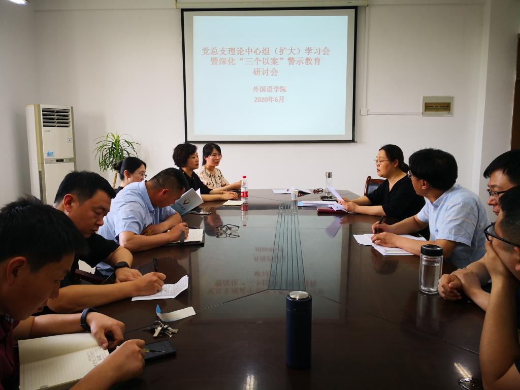 6月3日,外国语学院党总支理论学习中心组召开召开深化“三个以案”警示教育专题学习研讨会。学院党政领导、科级干部、党支部书记、教研室主任及教师代表参加学习会,会议由学院党总支书记王华主持。