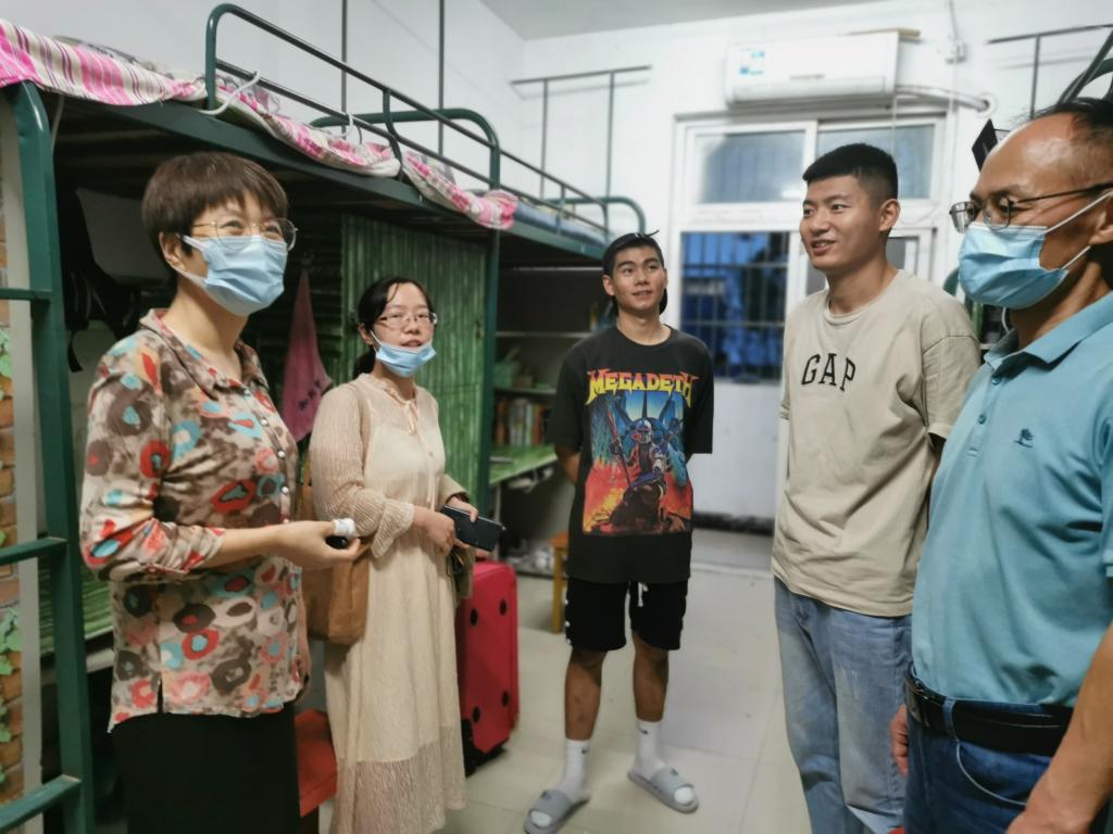 8月9日晚,学院领导张雁凌、郝景东,辅导员徐国庆、余阳一行深入走访学生宿舍,看望学生,详细了解学生的到校过程。张雁凌和郝景东在和同学们交流中叮嘱同学们要严格遵守疫情防控期间校园管理要求、做好常态化疫情防控的自我管理和个人防护,养成良好的生活卫生习惯,注意身体健康,保持积极的心理状态,共同营造安全有序的校园环境。