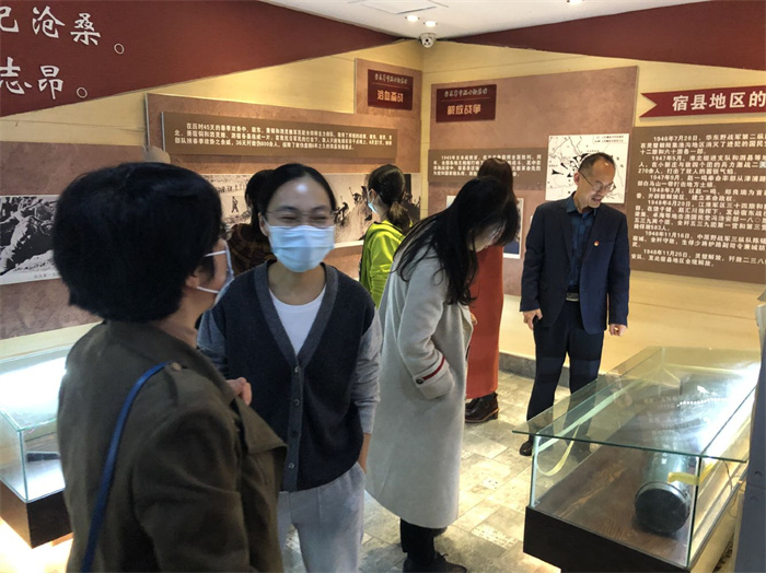 在宿东革命烈士纪念馆,党员们驻足端详书籍、照片、遗物等珍贵史料和复原场景,一起重温了那段战火纷飞的峥嵘岁月,感受革命先烈们坚守信仰、勇于牺牲的革命精神。