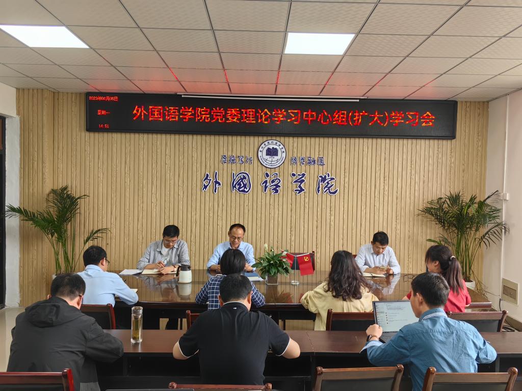 6月5日下午,外国语学院在逸夫楼A318会议室召开了党委理论学习中心组(扩大)学习会,学院党委委员、全体科级干部、教研室主任参加,会议由党委书记郝景东主持。
