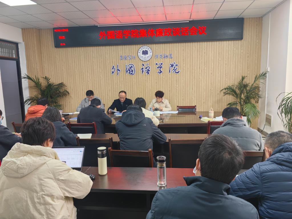 11月29日下午,外国语学院在逸夫楼318会议室召开廉政教育提醒会。学院领导班子成员、党支部书记、各教研室主任、全体科级干部参加会议。会议由院党委副书记、纪委书记张亚锋主持。