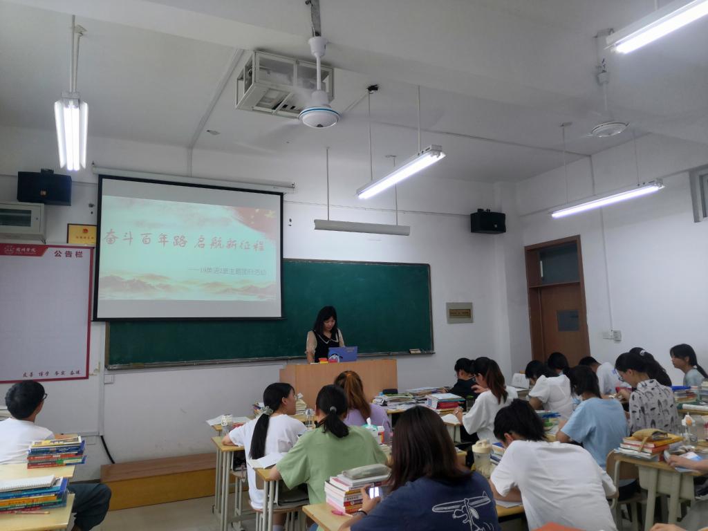 6月25日上午,为积极响应团委、校团委等上级团组织的号召,团委紧扣时代热点与主题,引导广大青年不忘初心,牢记使命,増强“四个意识”,树立“四个自信”,坚定不移听党话、跟党走。外国语学院19级英语2班在逸夫教学楼A121教室举办了以奋斗百年路,启航新征程为主题的团日活动,2班全体成员参加了此次活动。