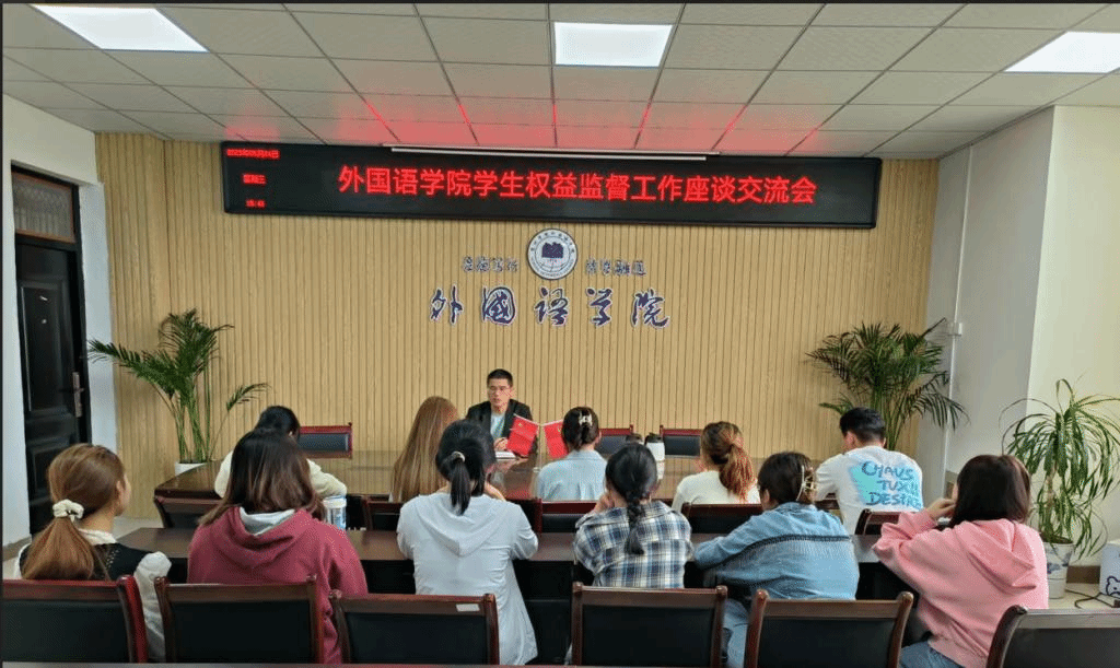 为推深做实主题教育调研活动,进一步加强学生与学院的沟通交流,关心了解学生需求,为学生提供更高质量的服务保障,5月24日下午,外国语学院组织召开学生代表座谈会。院党委副书记、纪委书记张亚锋主持会议。
