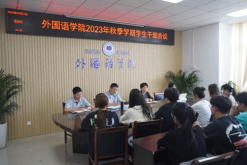 为进一步提高学生干部的政治素养和工作能力,发挥学生干部在联系、沟通和服务学生中的作用,9月21日,外国语学院在逸夫楼318会议室召开2023年秋季学期学生干部会议。学院党委副书记、院长张雁凌出席会议,院学生事务管理科科长宋皓、分团委书记赵婷婷和分团委学生会组织、学生社团负责人参加会议。会议由院党委副书记、纪委书记张亚锋主持。