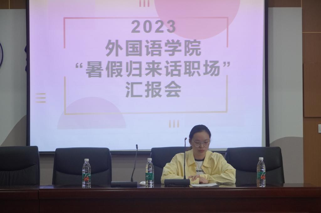 为帮助同学们端正就业观念、做好职业规划,发挥高年级学生朋辈榜样作用,外国语学院于10月11日下午在逸夫楼一楼会议室开展学长沙龙:“暑假归来话职场”活动,21级和22级部分受助困难学生向大一新生展示了暑期的职场体验。活动由分团委书记赵婷婷主持,学院党委书记郝景东、副书记张亚锋、学生事务管理科科长宋皓以及23级辅导员杨哲担任评委。