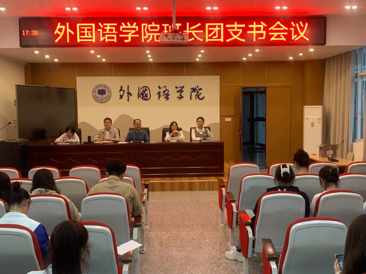 为切实加强学院班团队伍建设,提高学生干部工作能力,确保班级各项工作有序开展。11月2日下午,外国语学院在逸夫楼一楼会议室召开班长团支部书记工作会议,学院党委书记郝景东和全体辅导员出席本次会议,各班班长、团支部书记参加会议。党委副书记张亚锋主持会议。