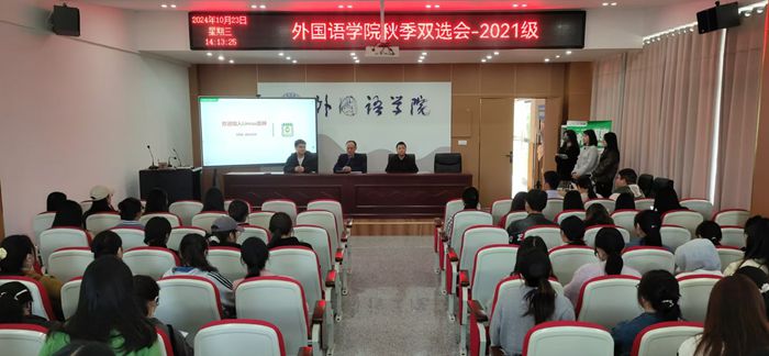 为帮助2025届英语专业和商务英语毕业生顺利落实毕业去向,外国语学院于10月23日下午在逸夫楼一楼会议室举办秋季专场招聘宣讲会。学院党委书记郝景东主持招聘会、省内外的四家用人单位分别开展了宣讲和招聘活动,毕业班辅导员和毕业生百余人参加会议。