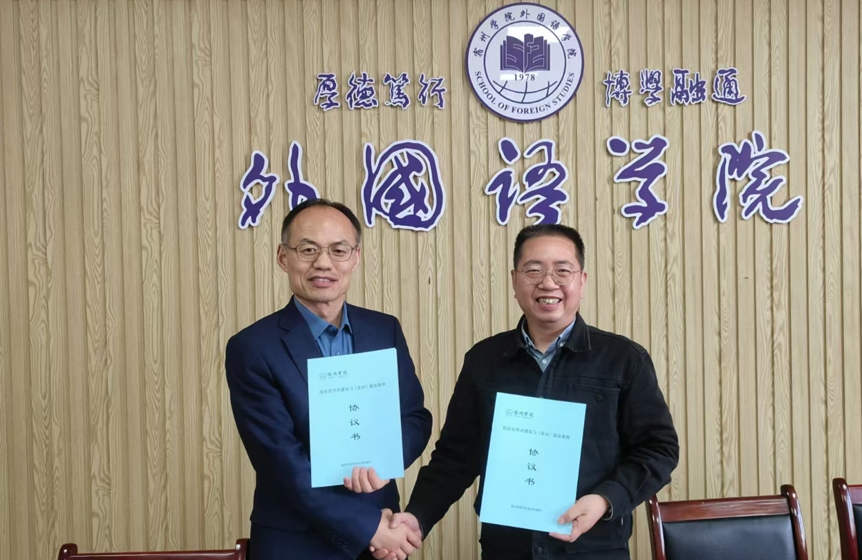 10月23日下午,外国语学院党委书记郝景东与前来我校参加24年秋季双选会的两家用人单位进行了洽谈,双方签订了实习就业协议开展校企合作。