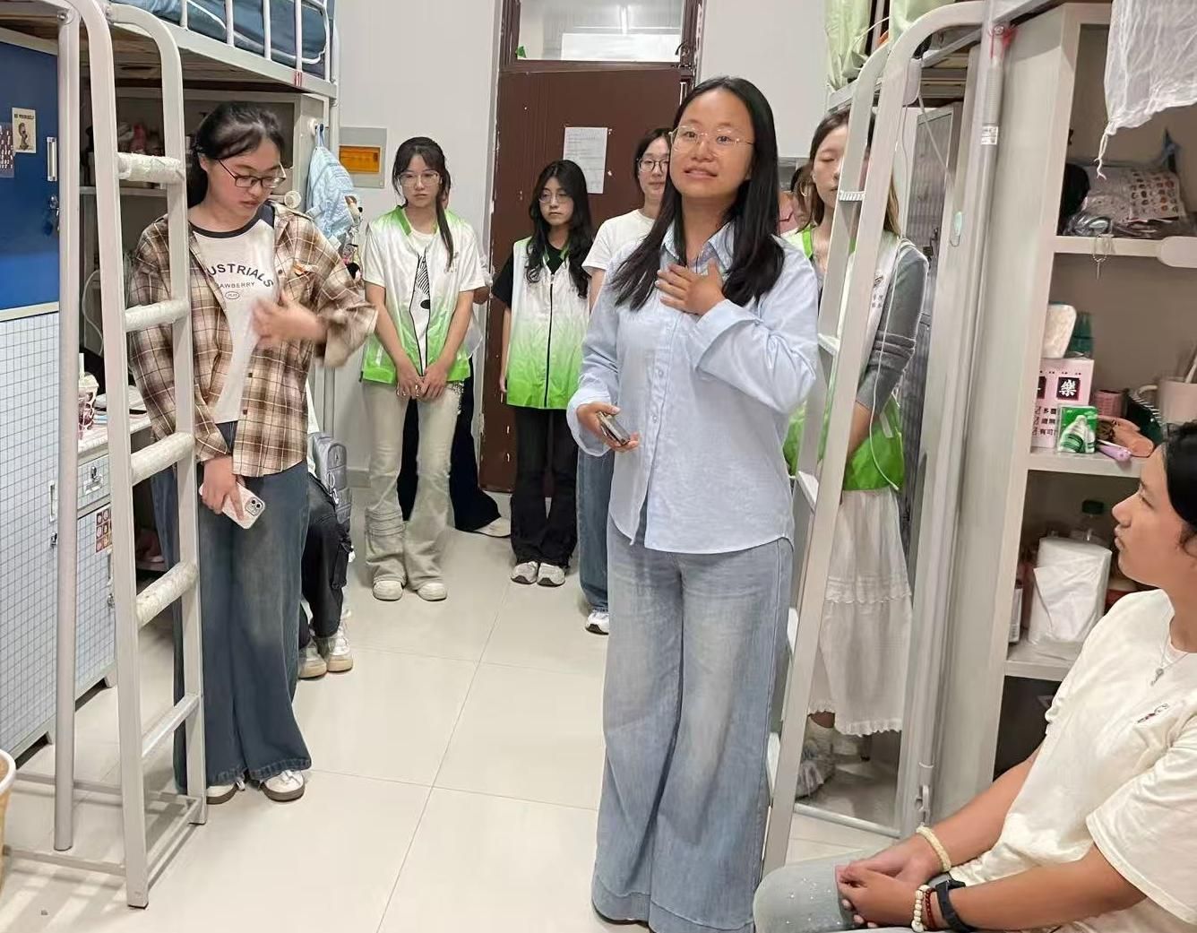 迎新日当晚,学院党委组织开展了“党员先锋岗进宿舍”活动。学生党员代表带领入党积极分子一同深入新生宿舍,走访慰问刚安顿下来的新同学。他们与新生亲切交谈,细致了解他们入学后的适应情况,耐心解答关于专业学习、校园生活等方面的疑问,并特别强调了安全意识。党员同志们主动亮身份、作表率,将关怀与温暖送到新生身边,发挥了党员的先锋模范作用,也帮助新生更快地融入集体生活。