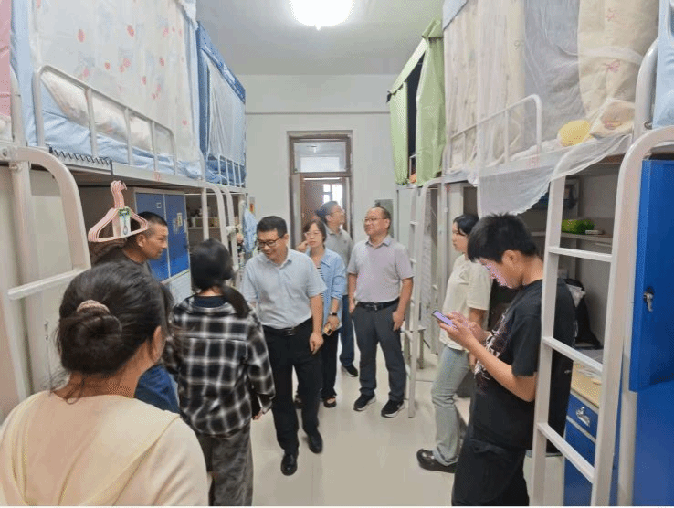 为深入了解2025级新生入学适应情况,帮助其尽快融入大学校园生活,9月13日下午,外国语学院党委书记王金岭、院长胡永近带领学院领导班子成员、新生辅导员一行,深入学院新生所在宿舍楼,开展走访慰问活动,为新生同学送去学院的温暖与关怀。