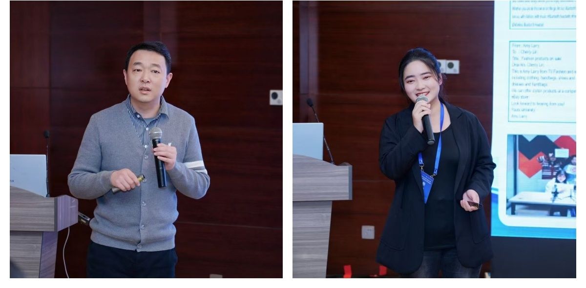 此外,会议还设六个分论坛。在“本科高校英语教学研究”分论坛中,外国语学院王培培老师以《AI赋能大学英语教材编写:宿州学院的探索与实践》为题,汇报了学院在人工智能技术与英语教学深度融合方面的创新探索;戴雨晴老师则以《赋能、重构与成长:跨境电子商务协同育人的创新路径与成效》为题,分享了学院在跨学科协同育人方面的实践成果。两位教师的报告内容紧扣时代需求,体现了我院在英语教学改革与人才培养模式创新方面的积极作为,获得了分论坛同仁的充分肯定。