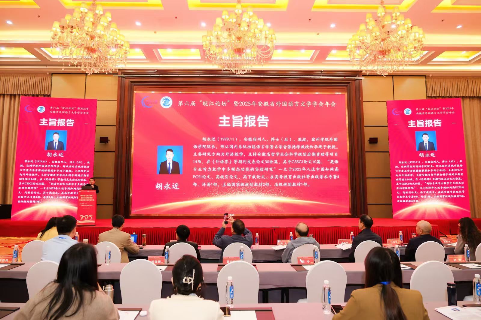 2025年11月14日至16日,安徽省外文学会第五届“皖江论坛”暨2025安徽省外文学会年会在合肥举行。本次年会由安徽省外国语言文学学会主办、安徽国际商务职业学院承办,来自省内各高校外语教学相关负责人、合作企业单位代表以及外文学会会员等300余名代表齐聚一堂,共襄学术盛会。宿州学院外国语学院高度重视此次学术交流,由院长胡永近带队,骨干教师代表一行参会,并在大会上作重要学术报告,展现了学院在外语研究领域的积极探索与创新实力。