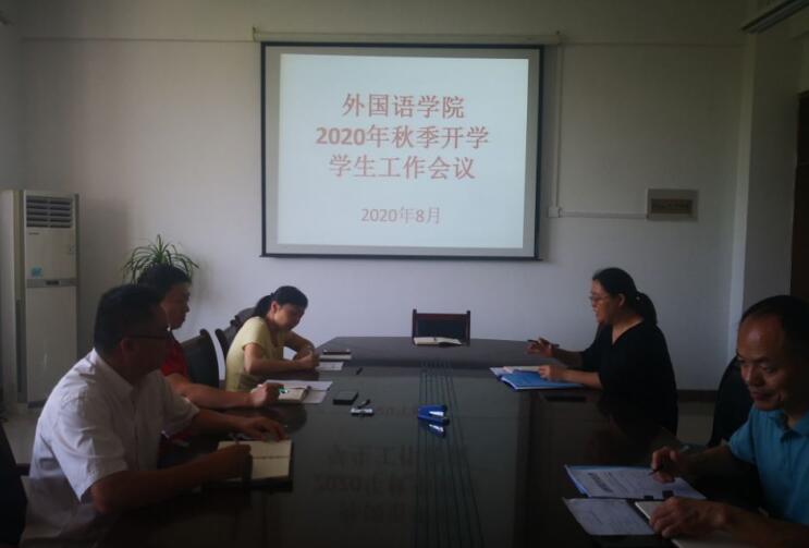 为在疫情防控中有效开展新学期学生工作,外国语学院于8月28日上午在逸夫楼A318办公室召开2020-2021学年第一次学生工作会议,党总支书记王华主持,党总支副书记、副院长郝景东及团总支书记宋皓、全体辅导员参加了会议。