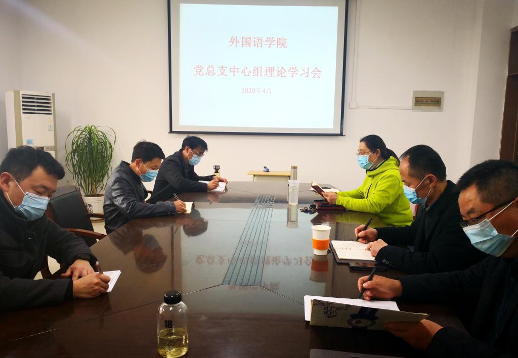 4月10日下午,外国语学院召开党总支中心组理论学习会,学习习近平总书记在十九届中央纪委四次全会上的重要讲话、学习校党委书记陈国龙、纪委书记王俊在宿州学院2020年全面从严治党暨安全稳定工作视频会议上的讲话。学院党政领导王华、李加强、郝景东及科级干部参加会议,会议由党总支书记王华主持。