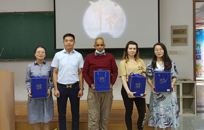 此次活动有国际合作交流处安晓斌副处长、李庆照副教授和李梦竹老师;外国语学院团总支书记宋皓老师和谢冰老师出席,此外,还有我校的外籍教师来自乌克兰的Tetiana女士和我校在本学年聘请的Marwan先生。外国语学院2020级新生近百人参加活动。学生会陆艺晴和丁志翔同学主持活动。在英语沙龙活动正式开始前,安晓斌、李庆照代表学校向外教赠送了传统月饼,表达了中秋佳节来临之际对外籍教师的问候。