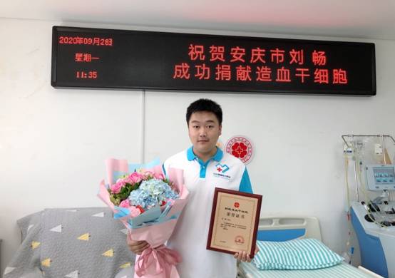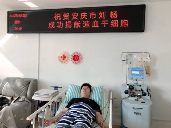 现年21岁的刘畅于2016年考入我校,就读于外国语学院英语专业,2020年7月毕业,目前是安庆市岳西县交通运输局的一名见习生。2018年3月22日,在宿州学院组织的无偿献血活动中,刘畅参加献血并采集血样加入了中华骨髓库。2020年8月,他接到安徽省红十字会的通知,他与一名9岁患再生障碍性贫血的小女孩初步配型成功,并征询他的捐献意愿。得知消息后,他欣然同意捐献造血干细胞,并在家人和单位的大力支持下,积极做好各项准备工作。9月23日,岳西县红十字会为刘畅举行欢送会,并送他入住中国科技大学附属第一医院(安徽省立医院) ,刘畅也成为岳西县首例造血干细胞捐献者。在注射9针动员剂后,于28日经过近三个小时采集了216ml的造血干细胞混悬液。随即这袋带着捐献者体温的“生命的种子”搭乘高铁送往患者所在的医院,将大爱传递到患者的体内。