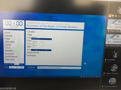 为了开阔我校学生视野,督促同学们更多的关注和了解国际事务,推动素质教育以培养精英学生,我校参加“安徽师范大学第十三届模拟联合国大会”。受疫情影响,2021年6月5日上午9:00,此次比赛为线上比赛,我校参赛选手于宿州学院逸夫楼318教室(英文组)和218教室(中文组)参加线上比赛开幕式。