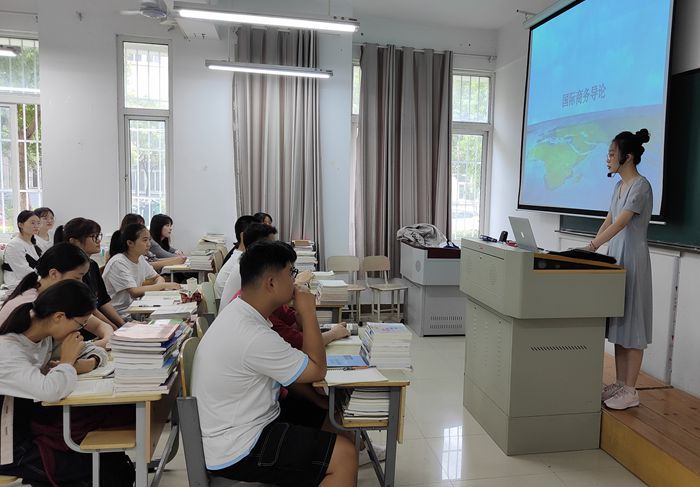 新进教师丁一凡老师首次讲授20商务英语的国际商务导论课程,张雁凌首先对班级整体教学风貌进行了巡查,对丁老师认真细致的准备进行了肯定,她认为新老师新气象,教学新开始,一切要从头开始就扎扎实实,一步一个脚印。然后就班级的学生学习材料准备情况进行了巡查,班级同学到课情况良好,均能提前到教室且有预习,张雁凌对此表示认可,并希望同学们能够继续保持良好的精神状态,尽快投入到学习中去。丁一凡老师授课精神状态良好,讲授条理清晰,内容逻辑性很强。对于课程安排目标明确,重难点突出。课后张雁凌对此表示肯定,希望新老师能够勤学勤问,加强业务学习,为更好地适应教师角色继续努力。