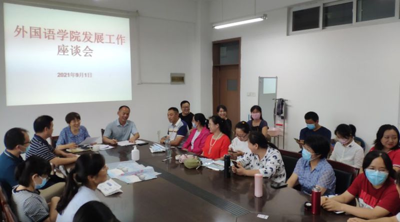 9月1日下午,外国语学院在318办公室召开教师座谈会。院党委副书记、院长张雁凌和院党委书记郝景东出席会议。会议持续一下午,分为老教师、双职工教师和青年教师三个专场,共有近70人参加了座谈会。会议由张雁凌院长主持。