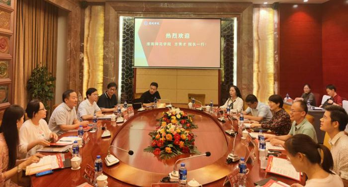 外研社杯赛事历史悠久,立足英语特色,持续创新升级,为大学生搭建英语沟通交流的舞台。十几年来,近500万学子通过赛事平台交流互进,锤炼本领,收获启发。外研社全国大学生英语系列赛蝉联入选2020全国高校学科竞赛排行榜,也是入选该榜单的唯一外语类赛事。2020年该项赛事由宿州学院成功承办,2021年的将由地淮南师范学院承办。对接会上,张雁凌介绍了外国语学院发展历程、师资队伍和办学成就等方面的情况,对外院学科建设的情况以及今后发展的思路进行了阐述。郝景东介绍了外院去年承办赛事的相关经验并表示会把成功的做法和注意事项毫无保留的分享。方秀才介绍了淮南师范学院外国语学院发展的亮点并对我院的无私分享表示感谢,希望通过赛事的承办加深兄弟学院之间的联系,相互学习,共同促进外语教育事业的发展。