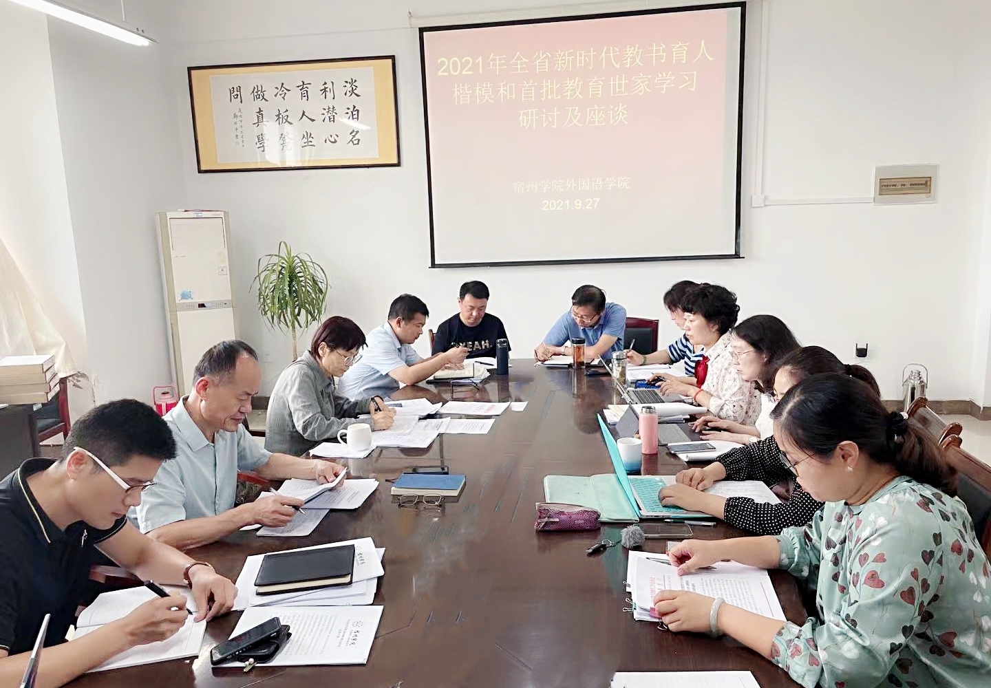 9月27日下午,外国语学院在逸夫楼会议室召开向2021年全省新时代教书育人楷模和首批教育世家学习研讨及座谈会,会议由院长张雁凌主持。