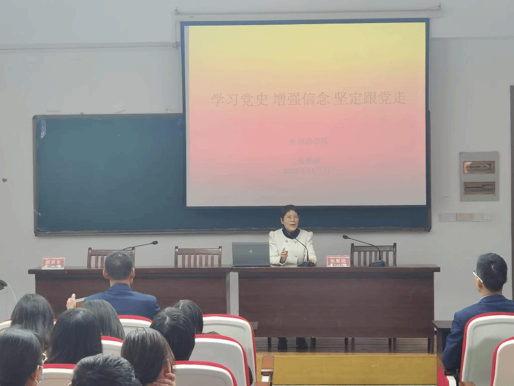 为深入贯彻关于开展党史学习教育的部署要求,外国语学院稳步推进党史学习教育,11月3日下午,学院党委副书记(临时负责)郝景东、院长张雁凌和副书记张亚锋带头为全体师生党员讲党课。