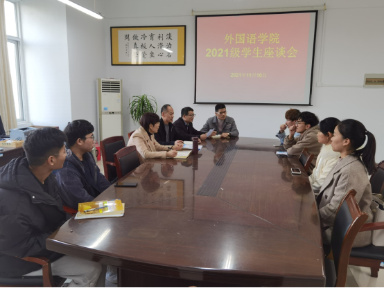 为加强外国语学院领导干部与学生之间的交流,深入了解学生的学习与生活情况,引领学生更好的成长,做实做细“我为师生办实事”实践活动,外国语学院制定出台了院领导联系年级制度。11月10日下午,外国语学院举办联系学生见面会。院领导班子成员和2021级学生代表参加。