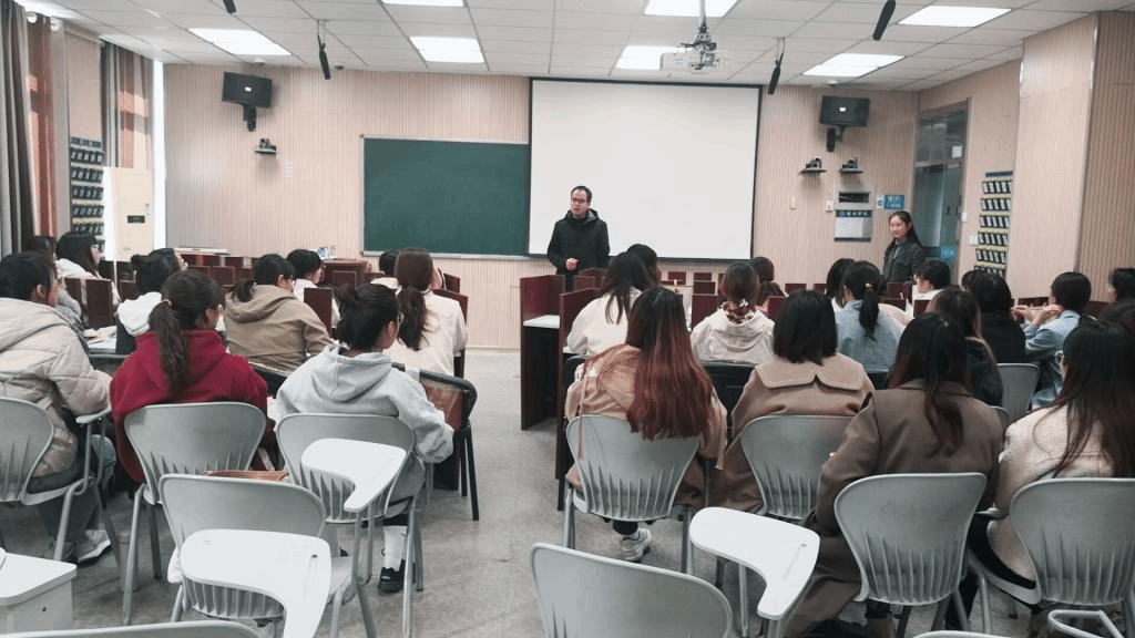示范课结束后,任晴晴与在座的学生就毕业生职业生涯发展和教师技能继续教育等问题进行了交流。最后,李小鹏对本次活动进行了总结,她希望中学教师能够经常为在校师范生进行师范教学和研讨,切实提高英语教学能力和教学意识。