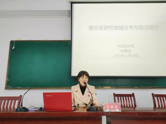 张雁凌首先介绍了赛珍珠其人、其文、其事,深入浅出的讲解使大家对赛珍珠研究掌握了必要的前期基础。之后,张雁凌从国外和国内两个维度介绍了赛珍珠研究的地域分布及其研究动态。最后,张雁凌总结了当下国内外赛珍珠研究的前沿动态,为外院教师未来的科研工作指出了切实可行的方向和路径。