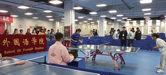 外国语学院有着浓厚的国球氛围,院领导高度重视教师和学生的文体活动工作,在一楼建起了乒乓球训练场地并配备了训练设备。新生入学时登记学生的文体特长,组建了乒乓球俱乐部长期开展训练和比赛。来自2021级英语专升本的凃慧同学以扎实的基本功和过硬的心理素质一路过关斩将获女子单打冠军。在小组赛中,全体队员以小组“第一名”的佳绩出线,进入“八强”。在淘汰赛中又以3:0的大比分碾压对手,进入“四强”和半决赛,在团体和双打决赛中惜败体育学院代表队荣获亚军。比赛的成功大大鼓舞了外国语学院队员的士气,大家的心贴得更近了,拳握得更紧了。