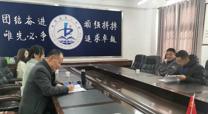 最后,郝景东在会议室受到了灵璧二中校领导的热情接待。校长张占先详细介绍了学校的基本情况和实习生的工作、生活以及待遇等情况,充分肯定了此次来校的4名英语专业实习生的工作能力和责任心,希望今后可以继续与宿州学院开展毕业生实习就业合作。郝景东和灵璧二中教导主任金剑分别代表两个学校签署了实习就业基地协议书,并就以后如何更好地开展合作进行了深入交流。