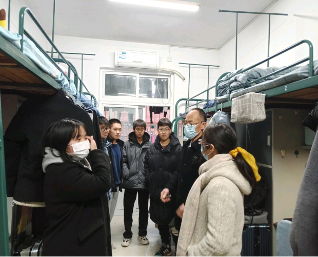 疫情不减温情,温暖传递爱心。在走访过程中,郝景东和辅导员与学生亲切交谈,详细了解同学们的目前学习和生活情况,特别叮嘱同学们要严格遵守学校疫情防控各项规定,认真做好疫情健康防护,坚持晨午检体温登记;保持宿舍环境清洁卫生,定期通风;注意个人的人身和财产安全,不要违规使用大功率电器,确保用电安全。同时也叮嘱同学们在即将来临的期末考试中,积极备考,不要懈怠,力争取得优异的成绩。