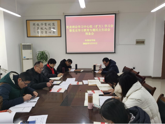 2022年1月11日上午,外国语学院党委在逸夫楼A318召开2022年1月份党委理论学习中心组(扩大)学习会暨党史学习教育专题民主生活会预备会。外国语学院党委委员、基层党支部书记参会,会议由外国语学院党委副书记(临时负责)郝景东主持。
