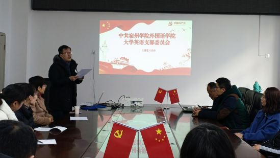 2022年1月13日,外国语学院大学英语教师支部委员会组织党员在西区继续教育学院会议室举行主题党日活动,活动主题为“二十大代表选举”。