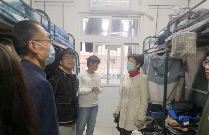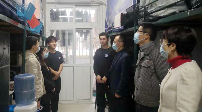 为落实“立德树人”根本任务,推进“三全育人”综合改革试点工作走深走实,在“大党建、大学工、大思政”指导思想下,外国语学院党委副书记(临时负责)郝景东、院长张雁凌、党委副书记张亚锋带领辅导员工作团队于3月10日下午深入走访学生宿舍与同学们深入交流,对同学们关心的问题进行了答疑解惑。