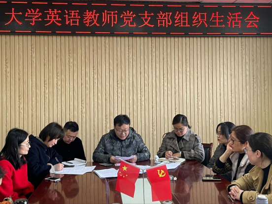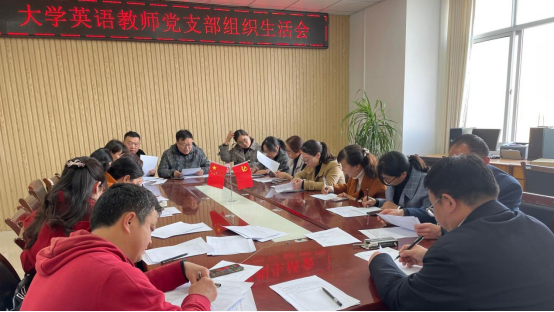 2022年3月9日,大学英语教师党支部在逸夫楼A314召开组织生活会及民主评议党员活动。会议由大学英语教师党支部书记黄伟主持,学院处级领导干部和党员参加。