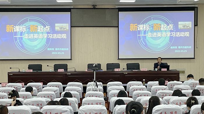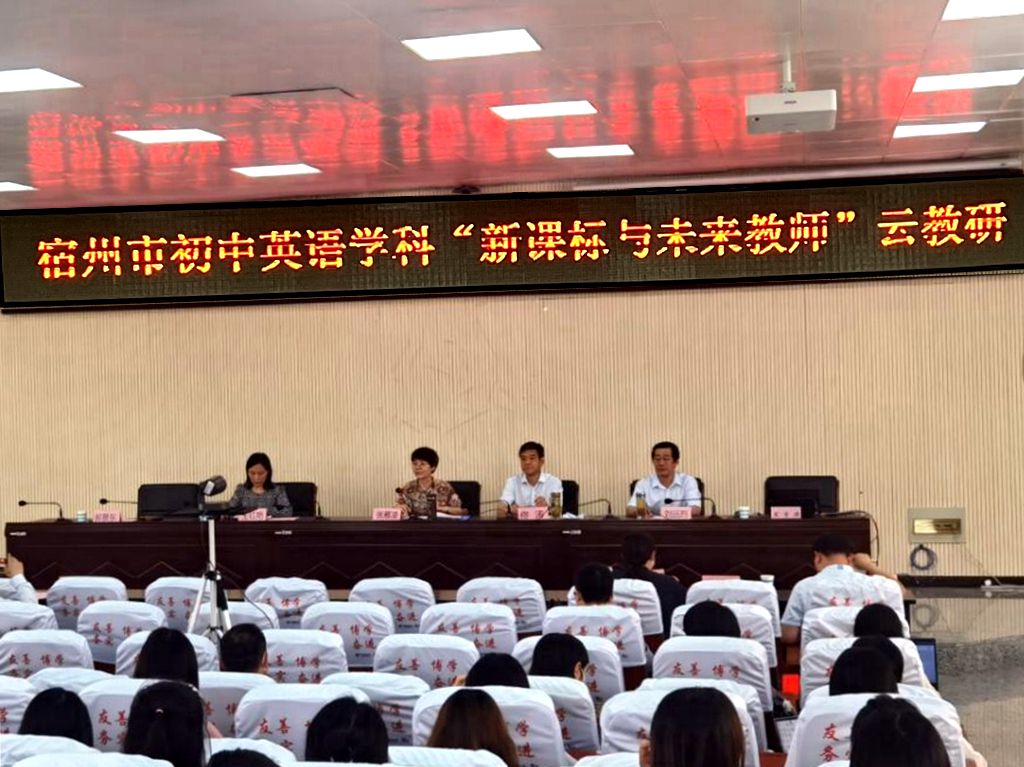 上海市英语教育教学研究基地首席专家、上海外国语大学束定芳教授做了题为《双新背景下的基础教育阶段外语教师发展》的主题报告;宿州市教科所侯姝琛老师做了题为《新课标,新起点——走进英语学习活动观》的专题讲座;宿州九中教育集团祝旭老师进行了“我的活动设计”实践分享。