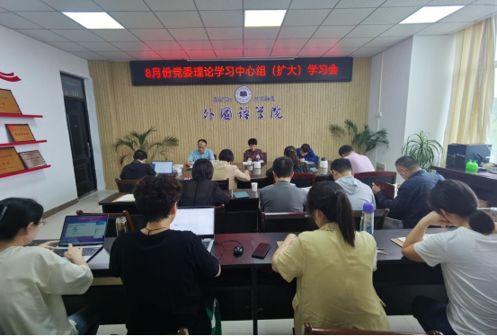 8月29日,外国语学院在318会议室召开党委理论学习中心组(扩大)学习会,学院党委委员、科级干部及教研室主任参加,会议由党委副书记(临时负责)郝景东主持。