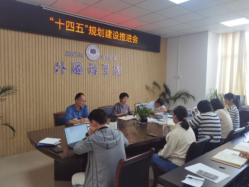 2022年9月26日,外国语学院召开“十四五”教育事业发展规划建设推进会。会议由外国语学院院长张雁凌主持,外国语学院党委副书记(临时负责)郝景东、副院长(科研)胡永近、各教研室主任及全体科级干部参加会议。