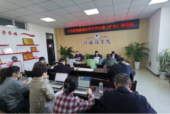 10月17日下午,外国语学院召开了党委理论学习中心组(扩大)学习会,学院党委委员、全体科级干部和教研室主任参加,会议由党委副书记(临时负责)郝景东主持。