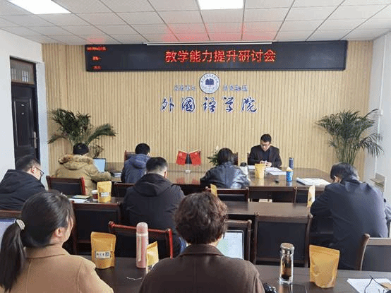 为贯彻落实宿州学院《关于开展2022-2023学年度第二学期“教师教学能力提升”活动的通知》,外国语学院于3月20日下午召开了2022-2023学年第二学期“教师教学能力提升”活动研讨会。外国语学院领导、教研室主任及全体科级干部参加了会议,会议由副院长胡永近主持。