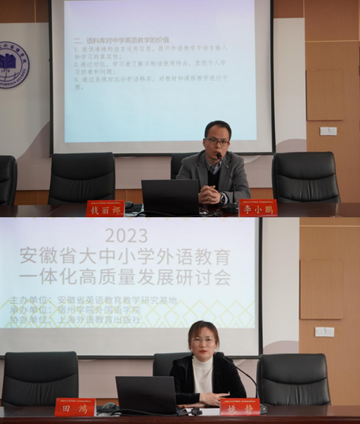 在分组交流环节,宿州学院外国语学院李小鹏副教授、砀山县教育局教研室高级教研员姚静老师分别围绕语料库与中学英语教学、砀山英语教育教学改革经验与创新举措进行了分享与交流。其他与会专家学者、一线教师也围绕大中小学外语教育一体化建设展开了既有理论深度又有实操精度的探讨。