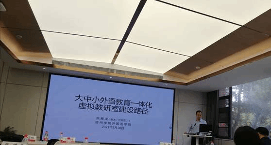 应会务组邀请,我院张雁凌教授做了题为“大中小外语教育一体化虚拟教研室建设路径”的主旨发言,谢冰老师代为发言。