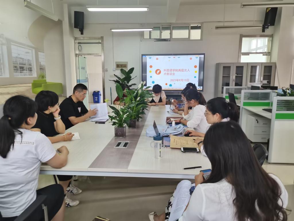 9月13日下午,外国语学院在逸夫楼B楼博士工作室召开了高层次人才座谈会,听取意见建议,凝聚发展共识。学院博士、在读博士参加会议,会议由院党委副书记、纪委书记张亚锋主持。