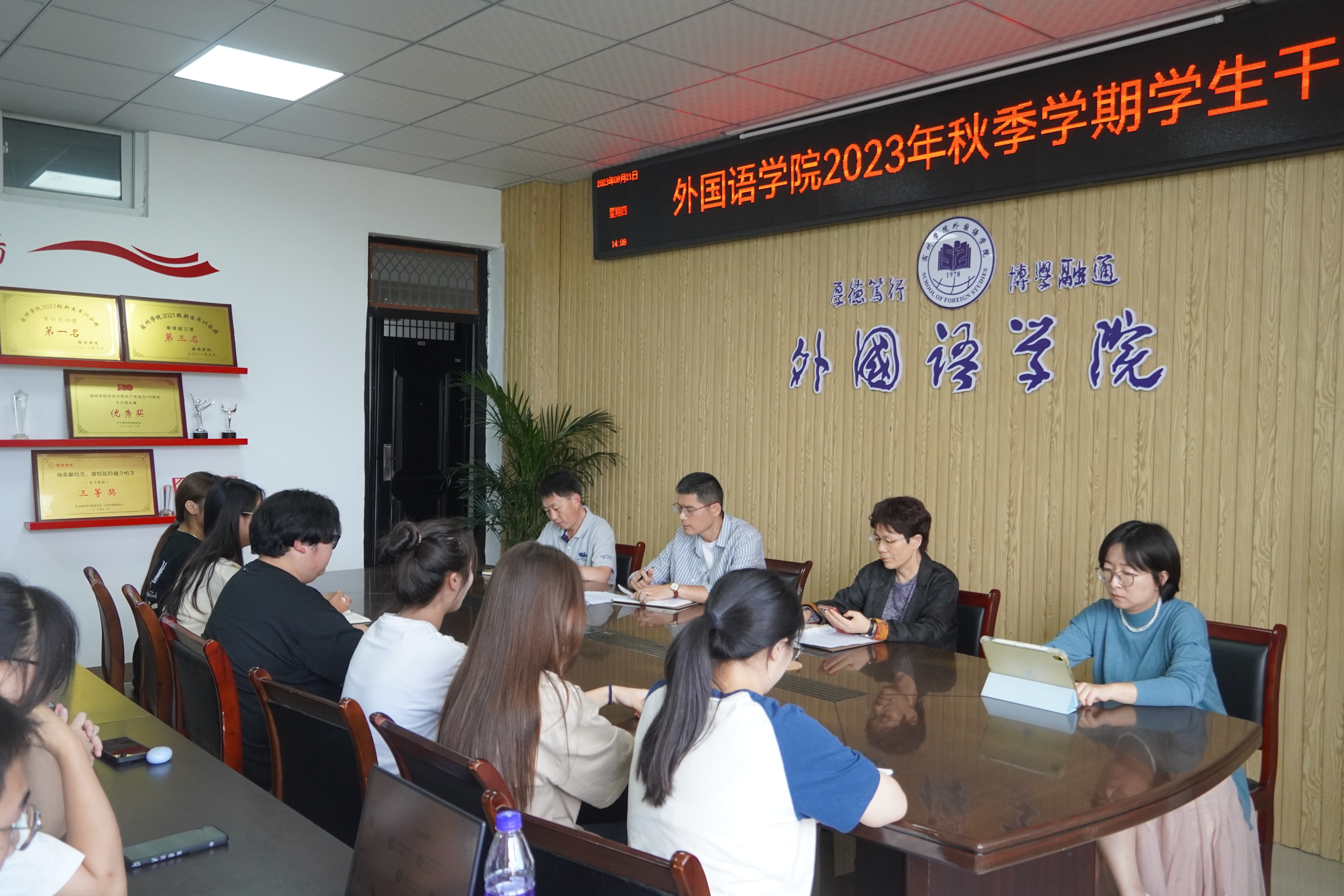 为进一步提高学生干部的政治素养和工作能力,发挥学生干部在联系、沟通和服务学生中的作用,9月21日,外国语学院在逸夫楼318会议室召开2023年秋季学期学生干部会议。学院党委副书记、院长张雁凌出席会议,院学生事务管理科科长宋皓、分团委书记赵婷婷和分团委学生会组织、学生社团负责人参加会议。会议由院党委副书记、纪委书记张亚锋主持。
