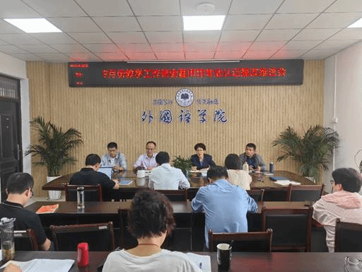 9月25日下午,外国语学院在逸夫楼A318召开了教学工作例会,会议由外国语学院院长张雁凌主持,各教研室主任和教学管理人员参会。会议议题主要围绕九月份教学工作、教研室人员变动、教学比赛、实习工作、数据采集、毕业论文选题等多个方面展开。