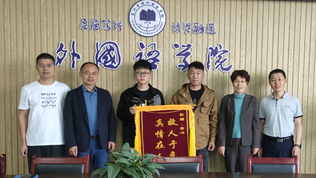 16日早晨,老太太的曾孙王先生放下手头的工作,专程来到了宿州学院赠送锦旗表示感谢。王先生说:“徐同学是我们一家人的恩人,我们家现在已经五世同堂了,如果没有徐同学,不知道这个家将会经历什么。万分感谢贵校培养出了这么优秀的学生,能有如此强烈的责任感和一颗这么善良的心,在我家老人如此危难之际,能够做出这样可贵的举动,谢谢你们!”外国语学院辅导员宋皓老师介绍,徐冲是一名品学兼优的学生,曾担任2020级英语3班的班长。能吃苦,敢担当。外国语学院党委书记郝景东对徐冲的见义勇为行为高度赞扬。同时徐冲也是一名入党积极分子,作为一名新时代的大学生,徐冲乐于助人的善举体现了当代大学生的社会责任感和良好的精神风貌,传递了社会正能量,值得每个人学习。