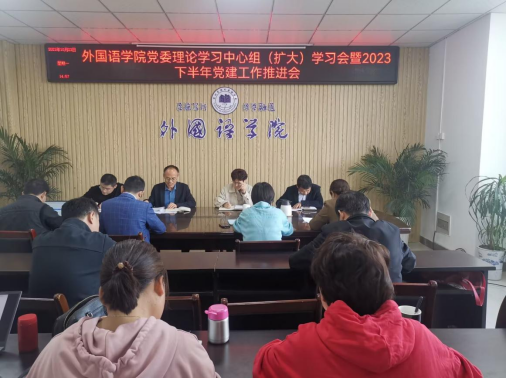 10月23日下午,外国语学院在逸夫楼A318会议室召开了党委理论学习中心组(扩大)学习会暨2023下半年党建工作重点任务推进会,学院党委委员、科级干部以及党支部书记参加,会议由党委书记郝景东主持。