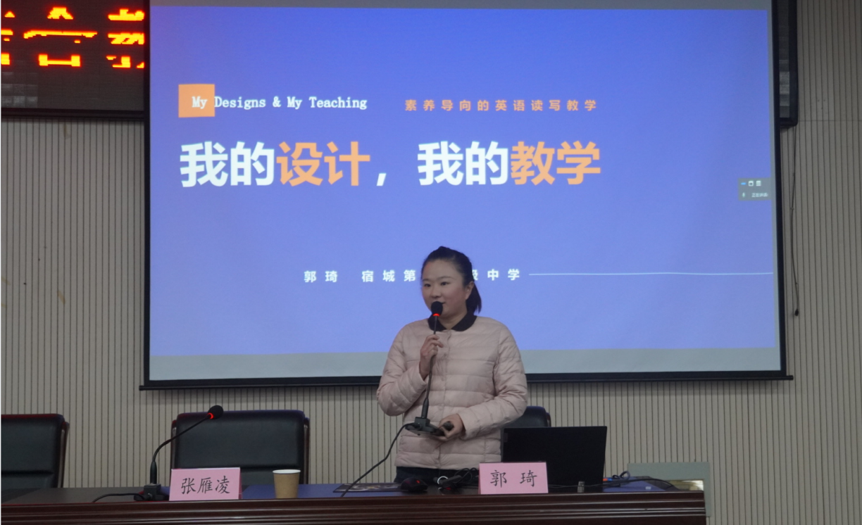 此次云教研活动共分为专题讲座、实践分享、课例展示三个环节。南京邮电大学外国语学院硕士生导师、刘艳教授做了题为《中小学英语阅读与写作融合的新视角》的主题报告。宿州市教科所正高级、特级教师侯姝琛老师做了题为《理念与实践:新课标背景下的初中英语读写结合教学》专题讲座。宿城第一初级中学郭琦老师围绕“用书上的话,写多彩生活”的主题,做了精彩的现场课堂教学展示。